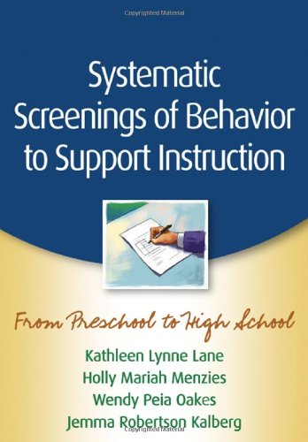 Straightforward, practical, and user friendly, this unique guide addresses an essential component of decision making in schools. The authors show how systematic screenings of behavior—used in conjunction with academic data—can enhance teachers' ability to teach and support all students within a response-to-intervention framework. Chapters review reliable, valid screening measures for all grade levels, discuss their strengths and weaknesses, and explain how to administer, score, and interpret them. Practitioners get helpful guidance for evaluating their school's needs and resources and making sound choices about which tools to adopt.